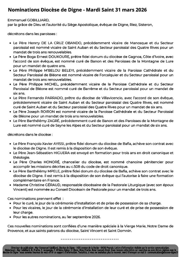 - Le prochain chapelet + messe du mois d’avril aura lieu à Céreste et pas à Vachères.