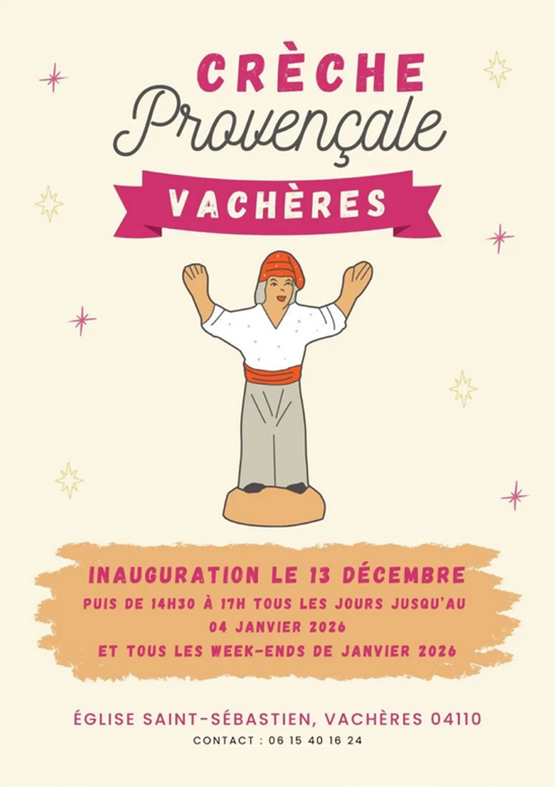 ∗ Crèche de Céreste : du 15 décembre 2024 au 26 janvier 2025, ouvert tous les jours. Voir